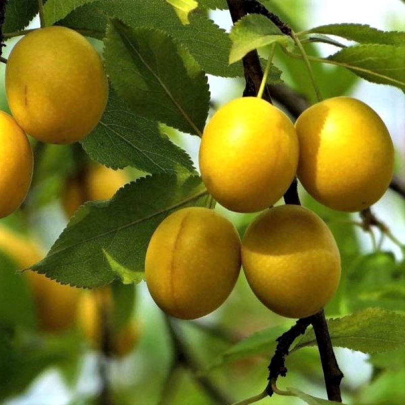 Саженцы алычи Гек будут давать крупные, немного ассиметричные плоды с мякотью желтой окраски. Вкусовые качества – на любителя: малосочные и сладко-кислые, что практически нейтрализуется при консервировании. Особенно хороши и полезны алычовый сок с мякотью и варенье.