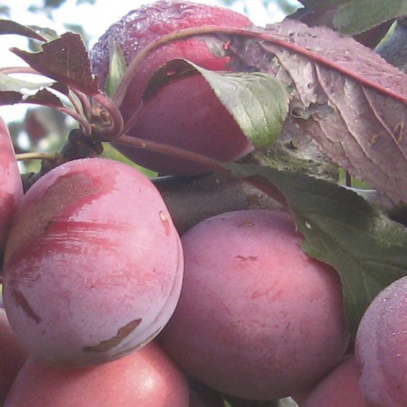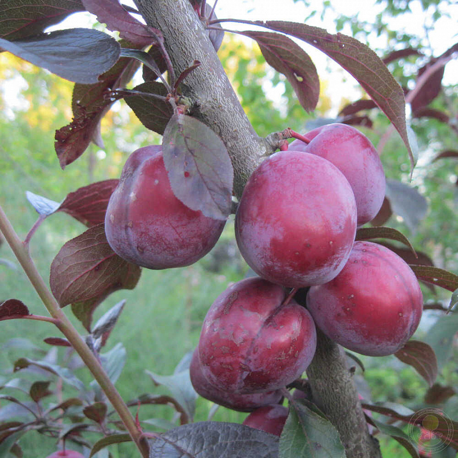 Саженцы алычи сорта Лама порадуют высокой декоративностью кроны и отличными вкусовыми качествами плодов. На протяжении летнего сезона растение будет украшать загородный участок яркой листвой красного оттенка. К середине августа на ветвях крупномеров алычи созревают крупные ягоды. Особенности плодов: