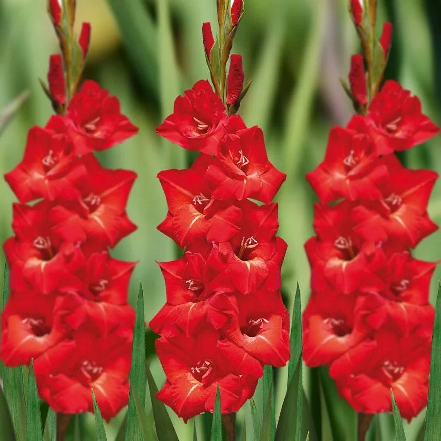 Гладиолус крупноцветковый "Шинон" - это великолепное растение с насыщенно-красными, бархатистыми цветками, которые будут радовать ваш взгляд в июле, августе и сентябре. Высота этого гладиолуса может достигать 90-120 см, что делает его заметным акцентом в любом саду. Листья зеленого цвета создают прекрасный контраст с яркими цветами, придавая растению особый шарм.