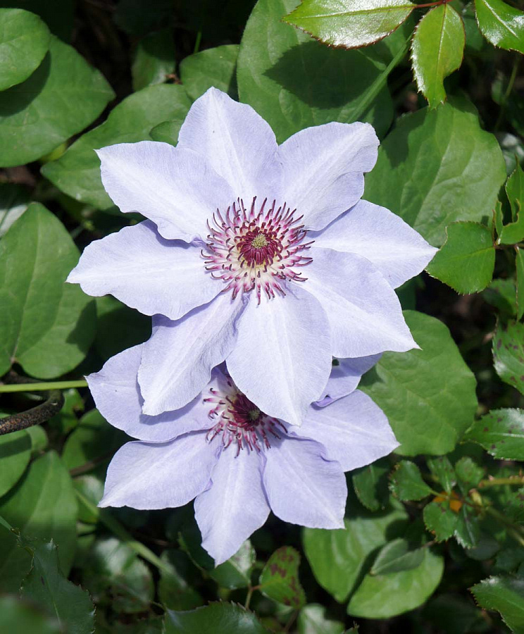 Саженцы клематиса гибридного Стилл Вотерс (Still Waters) предпочитают супесчаные или суглинистые плодородные почвы с хорошей водопроницаемостью. Не требовательны к уровню освещения, растут и обильно цветут как на солнце, так и в полутени. Цветет с мая по июль на прошлогодних побегах, в августе – сентябре зацветает повторно, на молодом приросте. Цветки в диаметре достигают 8-10 см, фиолетово-голубые со светлой полосой, проходящей в центре каждого лепестка. Клематис гибридный Стилл Вотерс (Still Waters) подходит для выращивания вдоль ограждений, решеток, заборов, озеленения балконов, лоджий и террас.