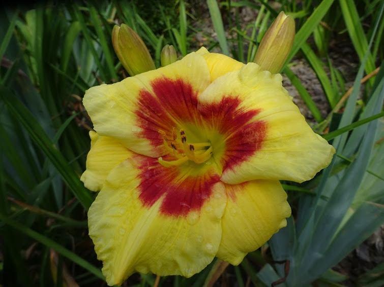 Окраска цветка : Золотисто-желтая с красным глазком, салатовым горлом