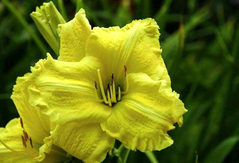 Саженцы и рассада Лилейника гибридного Гел Скаут (Hemerocallis) подойдут для украшения сада в традиционном или восточном стиле. Цветы этого сорта ярко-желтые, напоминают соцветие лилии. Их лепестки удлиненные и закругленные на краях, однотонные, обрамлены бархатной гофрировкой.