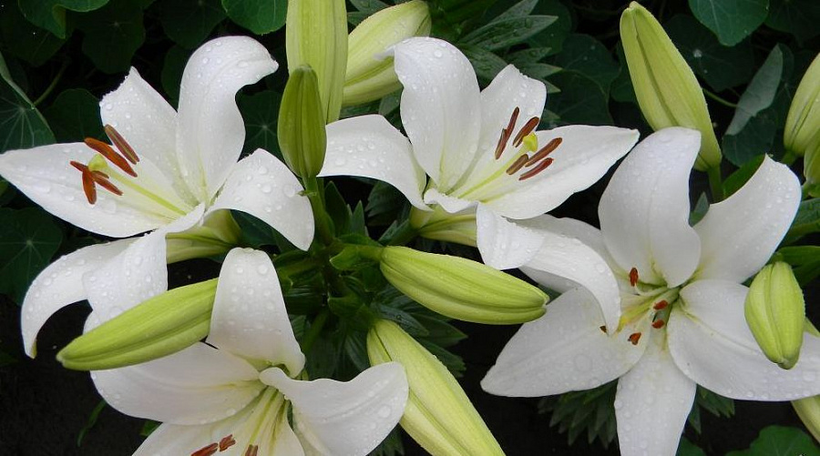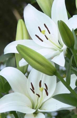 Окраска цветка : крупный, белый удлиненной формы, темно-оранжевые пыльники, у центра мелкий редкий красный крап