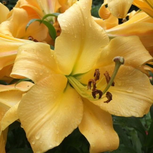 Окраска цветка : абрикосо-желтый с коричневыми пыльниками