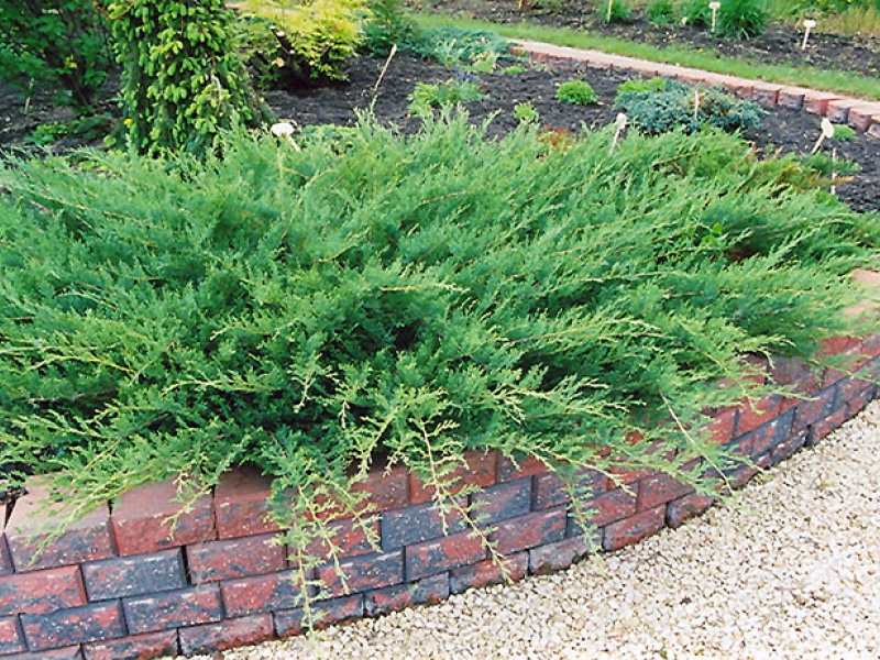 Саженцы можжевельника казацкого Блю Донаубе (Juniperus sabina Blue Danube) лучше высаживать на солнечных местах, допускается небольшое затенение. Расстояние между высаживаемыми растениями – от 0,5 до 2 метров. Культура предпочитает умеренно влажную почву с реакцией от слабокислой до нейтральной. Можжевельник казацкий Блю Донаубе отличается раскидистой густой кроной, диаметр которой может достигать 150 сантиметров. Максимальная высота взрослого кустарника – 80-100 сантиметров. Хвоя чешуевидная, красивого зелено-голубого окраса.
