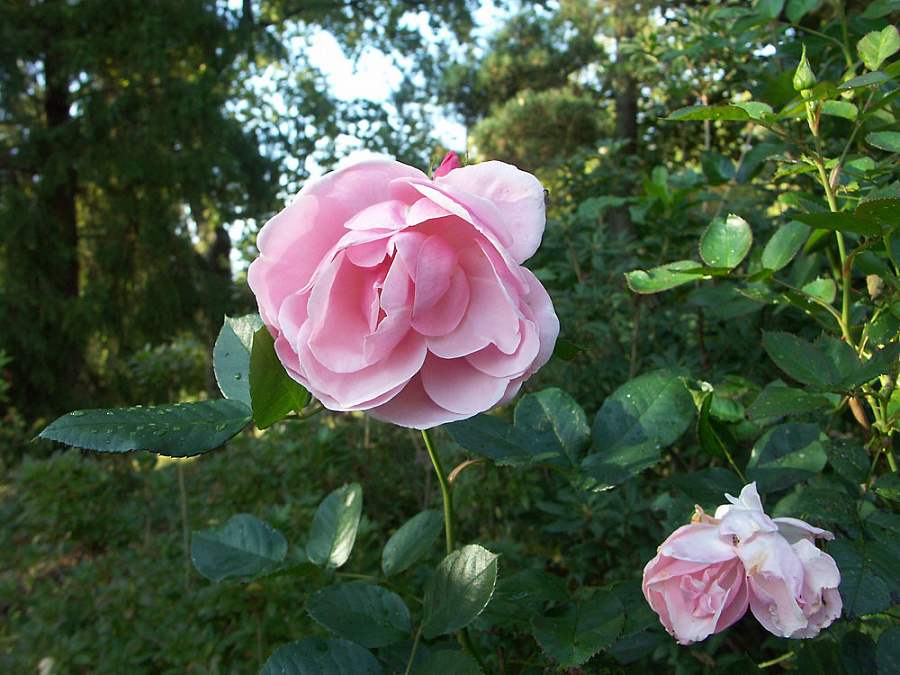 Цветки: в кистях по 3–5 штук, махровые, чашевидные или плоские, светло-розовые, диаметром 9–10 см.
