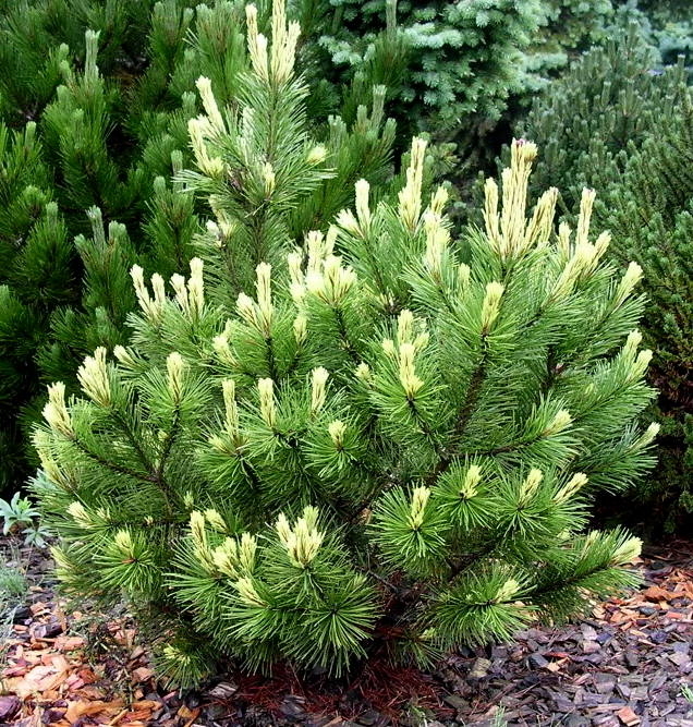 Саженцы сосны горной: шаровидные хвойные кустарники дают простор для идей оформления участков. Компактные и живописные крупномеры вырастают в среднем до 1м в высоту. Отличаются густыми кронами, мелкой жесткой хвоей и разнообразными зелеными оттенками от золотистого до лимонного. Плодоносят мелкими круглыми шишками. Сосна горная хорошо сочетается с любыми хвойными и лиственными насаждениями.