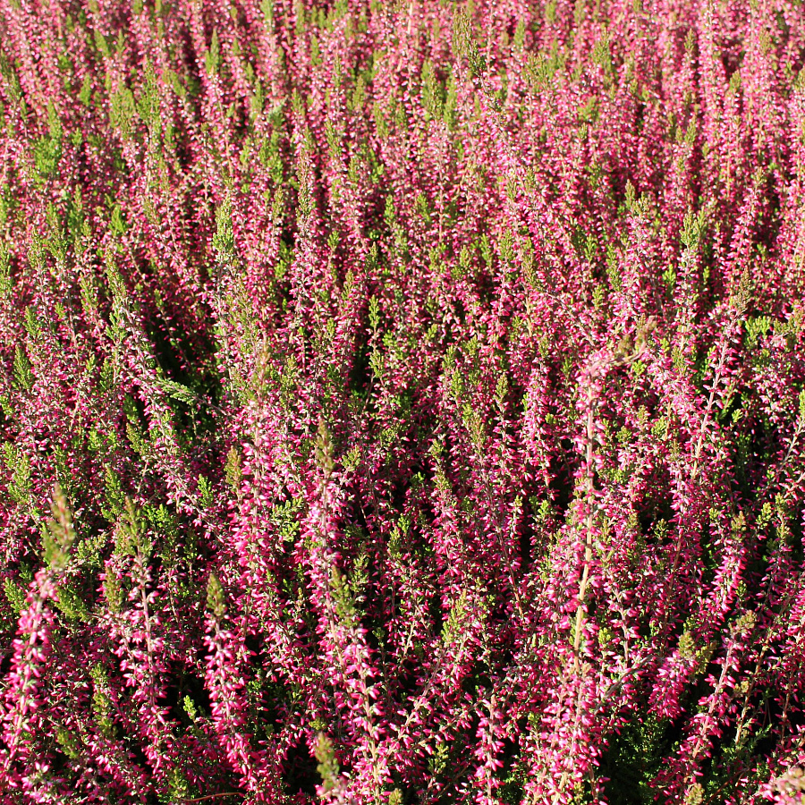 Саженцы вереска обыкновенного Энджи (Angie) принадлежат сортосерии «верески – бутоны». Особенность растения в крупных цветках, сохраняющих форму нераскрытого бутона с начала цветения (в сентябре) до поздней осени. Лепестки ярко-красные, они покрывают побег сверху донизу, создавая волшебный эффект алого облака.